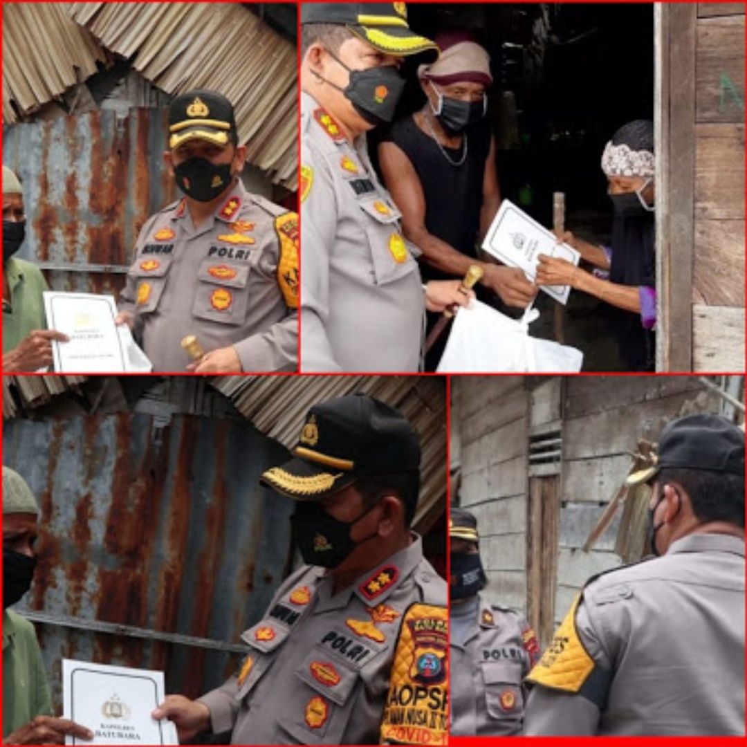 Kapolres Batubara,AKBP Ikhwan Lubis SH MH didampingi Kasubbag Humas,AKP Niko kunjungi dari pintu ke pintu (door to door) kepada warga yang kurang mampu menyalurkan bantuan paket sembako dari Kapoldasu,Irjen Pol Drs Panca Putra Simanjuntak MSi.