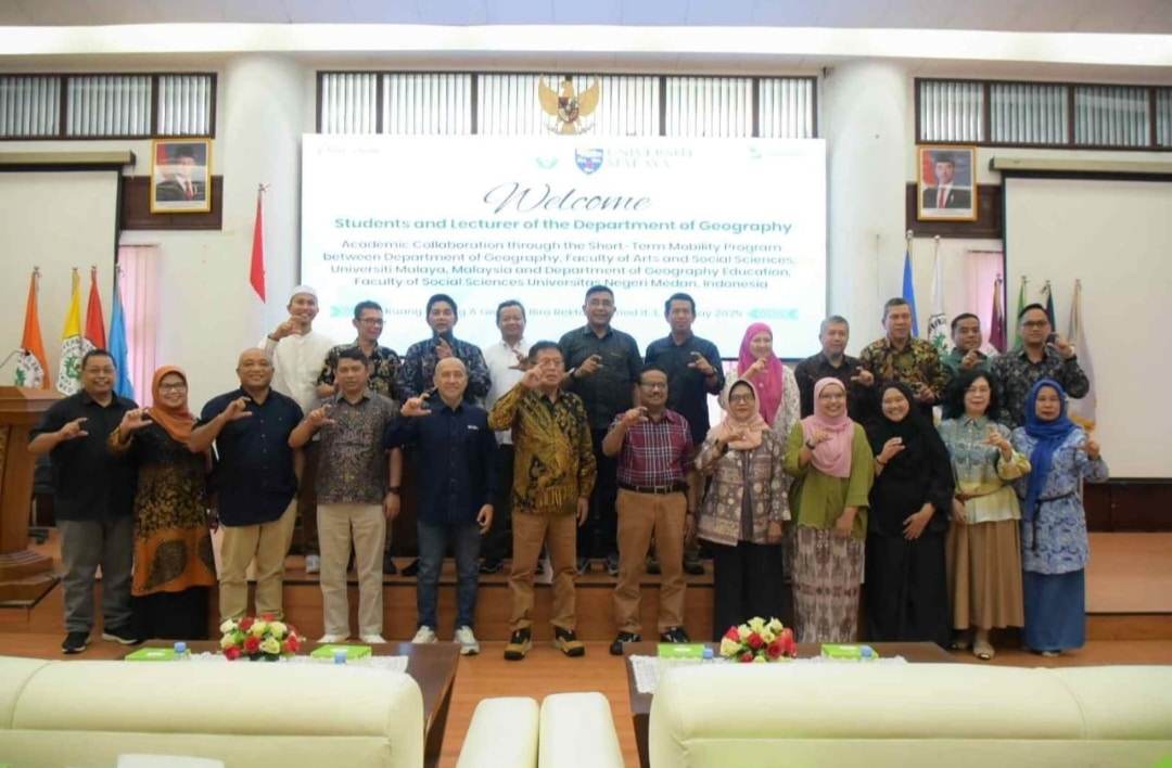 Jurusan Geografi Fakultas Ilmu Sosial Universitas Negeri Medan (Unimed) secara resmi menjalin kerja sama internasional dengan Universiti Malaya (UM), Malaysia, melalui program Short-Term Mobility. Kolaborasi ini ditandai dalam acara Welcome Ceremony and Cultural Performance yang berlangsung meriah pada Jumat, 9 Mei 2025, di Gedung Rektorat Unimed.