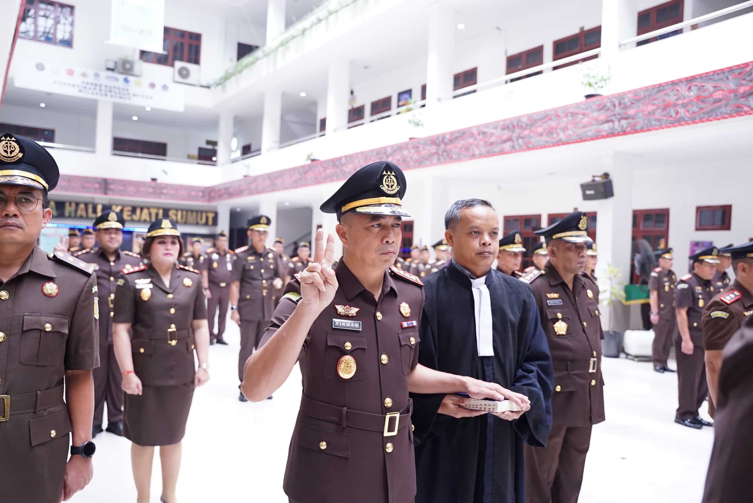 Kepala Kejaksaan Tinggi Sumatera Utara Dr.Harli Siregar, SH.,M.Hum memimpin langsung upacara pelantikan dan serah terima jabatan Wakil Kepala Kejaksaan Tinggi (Wakajati) Sumatera Utara, Asisten Intelijen, Asisten Pembinaan, Asisten Pengawasan hingga Asisten Perdata Tata Usaha Negara berdasarkan yang berlangsung di Adhyaksa Hall Kejati Sumut Jln Jenderal Besar AH Nasution Medan.