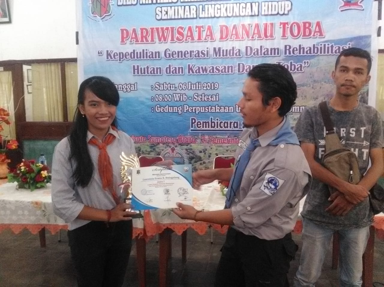 | Penyerahan hadiah pemenang Juara Lomba Fotogragphi, bertema Kearifan Lokal Kawasan Danau, oleh Ketua Badan Pengurus Harian (BPH) Mahatala Jefri Sinaga |