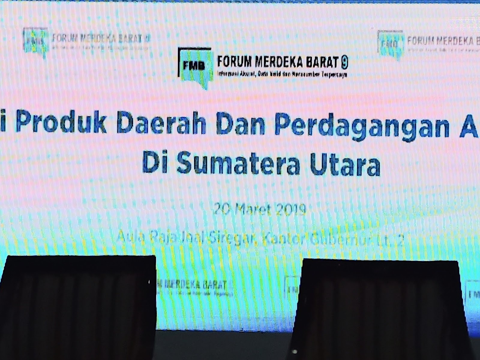 Forum Merdeka Barat Acara Diskusi Forum Merdeka Barat 9 (FMB9) dengan tema hilirisasi dan perdagangan antar daerah, Rabu (20/3/2019) yang bertempat Aula Raja Inal Siregar, Kantor Gubernur Sumut di Medan