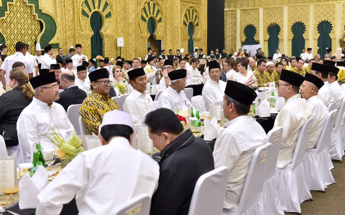 Presiden Joko Widodo menghadiri undangan buka puasa bersama dari Ketua DPD Oesman Sapta Odang yang digelar di kediamannya yang berlokasi di Jalan Karang Asem Utara, Jakarta Selatan, pada Rabu, 15 Mei 2019.