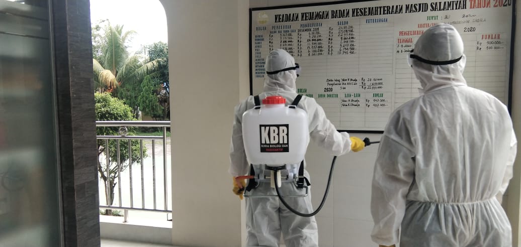 Tujuan di laksankannya giat ini yaitu untuk mencegah penyeberan virus corona di tempat – tempg yg sering di pergunakan masyarakat untuk beraktifitas seperti halnya rumah ibadah . Subden KBR Gegana Brimob Polda Sumut menyemprotkan cairan disinfektan di Masjid Salamiyah Jalan Cempaka Medan.
